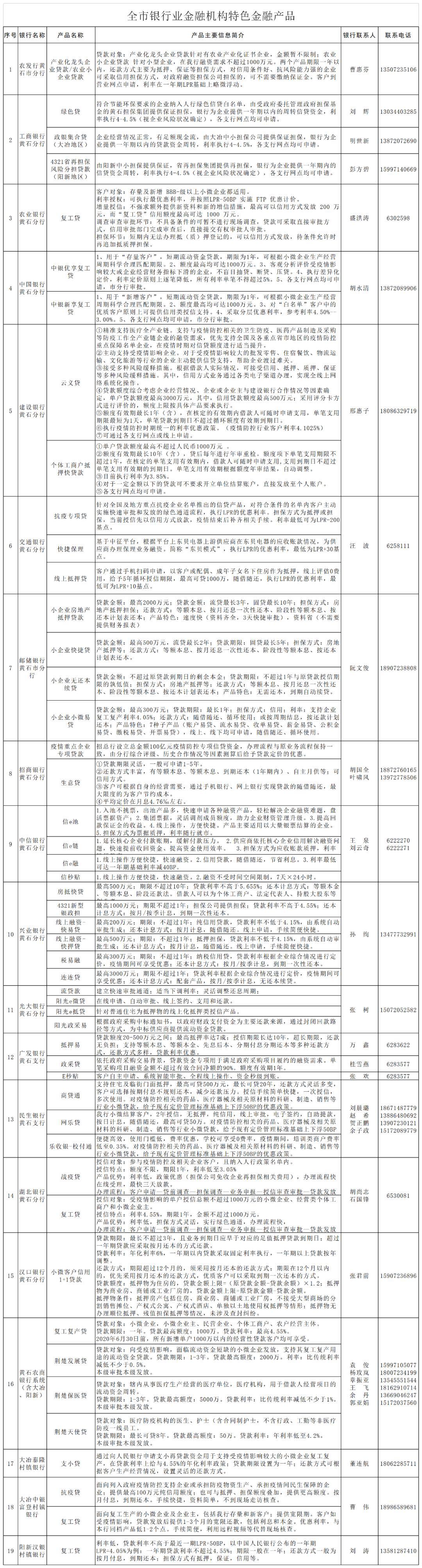 (一)專項(xiàng)再貸款支持重點(diǎn)防疫企業(yè)。專項(xiàng)再貸款是指人民銀行為支持打贏新冠肺炎疫情防控阻擊戰(zhàn),向金融機(jī)構(gòu)提供的低成本再貸款資金。用于支持金融機(jī)構(gòu)向相關(guān)直接參與防疫的重點(diǎn)醫(yī)用物品和生活物資的生產(chǎn)、運(yùn)輸和銷售的重點(diǎn)企業(yè)提供優(yōu)惠利率信貸資金。總規(guī)模為3000億元,其中,全國性銀行2000億元,重點(diǎn)省份的地方法人機(jī)構(gòu)1000億元(湖北200億元)。1、支持范圍:資金投向?qū)嵭兄攸c(diǎn)企業(yè)名單制動態(tài)管理。包括全國性重點(diǎn)企業(yè)名單和省重點(diǎn)企業(yè)名單。黃石市目前納入目錄內(nèi)防疫重點(diǎn)企業(yè)合計(jì)67家,其中全國性重點(diǎn)企業(yè)8家(其中8家既是國家級又是省級重點(diǎn)),省級重點(diǎn)企業(yè)67家。2、承辦機(jī)構(gòu):農(nóng)發(fā)行只能向全國性重點(diǎn)企業(yè)發(fā)放;湖北銀行、漢口銀行只能對省級重點(diǎn)企業(yè)發(fā)放;工、農(nóng)、中、建、交、郵儲行既可以對國家級重點(diǎn)企業(yè)發(fā)放優(yōu)惠貸款,也可以對省級重點(diǎn)企業(yè)發(fā)放優(yōu)惠貸款。3、政策內(nèi)容:發(fā)放給企業(yè)的貸款利率上限為最近一次公布的一年期貸款市場報(bào)價(jià)利率(LPR)減100基點(diǎn),如:2月20日公布的LPR為4.05%,則3月20日前貸款發(fā)放利率上限為3.05%。同時,中央財(cái)政按企業(yè)獲得貸款的實(shí)際利率的50%進(jìn)行貼息,企業(yè)實(shí)際承擔(dān)的利率不會超過1.6%,再貸款期限為1年。4、申報(bào)流程:由符合條件的企業(yè)向金融機(jī)構(gòu)申請。相對于一般貸款,要求較為簡化,均實(shí)行線上審批、審批權(quán)限下放、信用貸款或抵押承諾制。5、部門職責(zé):發(fā)改和經(jīng)信部門負(fù)責(zé)重點(diǎn)企業(yè)名單申報(bào)。人民銀行負(fù)責(zé)向金融機(jī)構(gòu)發(fā)布推送重點(diǎn)企業(yè)名錄,督促金融機(jī)構(gòu)第一時間對接,及時授信、放貸,監(jiān)測合格貸款情況,統(tǒng)計(jì)上報(bào)金融支持進(jìn)展,發(fā)放專項(xiàng)再貸款。財(cái)政部門負(fù)責(zé)貼息。(二)再貸款再貼現(xiàn)專用額度支持企業(yè)復(fù)工復(fù)產(chǎn)。支農(nóng)、支小專用額度是指人民銀行落實(shí)習(xí)近平總書記重要講話精神和國務(wù)院常務(wù)會議要求,統(tǒng)籌推進(jìn)疫情防控和經(jīng)濟(jì)社會發(fā)展,切實(shí)解決企業(yè)復(fù)工復(fù)產(chǎn)迫切問題,加大金融對中小微企業(yè)和春耕備耕的支持力度,而專門用于企業(yè)復(fù)工復(fù)產(chǎn)的在再貸款。全國支農(nóng)再貸款、支小再貸款、再貼現(xiàn)專用額度共計(jì)5000億元,其中支農(nóng)再貸款專用額度1000億元、支小再貸款專用額度3000億元、再貼現(xiàn)專用額度1000億元。1、支持范圍:支農(nóng)再貸款全部用于發(fā)放涉農(nóng)貸款,重點(diǎn)支持脫貧攻堅(jiān)、春耕備耕、禽畜養(yǎng)殖、縣域小微企業(yè)復(fù)工復(fù)產(chǎn)等領(lǐng)域。支小再貸款全部用于發(fā)放普惠小微企業(yè)貸款(單戶授信1000萬元及以下小微企業(yè)貸款,含個體工商戶、小微企業(yè)主經(jīng)營性貸款),重點(diǎn)支持受疫情影響較大的外貿(mào)、制造業(yè)、旅游娛樂、住宿餐飲、交通運(yùn)輸?shù)刃袠I(yè)的小微企業(yè)和個體工商戶。專用再貼現(xiàn)優(yōu)先支持涉農(nóng)票據(jù)、小微企業(yè)票據(jù)和民營企業(yè)票據(jù),重點(diǎn)支持復(fù)工復(fù)產(chǎn)的小微企業(yè)、春耕備耕,以及受疫情影響較為嚴(yán)重的小微企業(yè)。2、承辦機(jī)構(gòu):再貸款支持黃石市農(nóng)村商業(yè)銀行、村鎮(zhèn)銀行共6家地方法人金融機(jī)構(gòu)發(fā)放涉農(nóng)貸款和普惠小微企業(yè)貸款;再貼現(xiàn)支持全部銀行業(yè)金融機(jī)構(gòu)按照行業(yè)要求開展貼現(xiàn)業(yè)務(wù)。3、政策內(nèi)容:涉農(nóng)和普惠小微企業(yè)貸款利率不高于一年期LPR加50個基點(diǎn),如:2月20日公布的LPR為4.05%,則3月20日前貸款發(fā)放利率上限為4.55%。再貸款發(fā)放期限為1年,發(fā)放貸款的有效時間為自“銀發(fā)〔2020〕53號”文印發(fā)之日起至2020年6月30日止。4、申報(bào)流程:符合條件的企業(yè)(個體工商戶)可以就近向轄區(qū)農(nóng)村商業(yè)銀行、村鎮(zhèn)銀行等地方法人金融機(jī)構(gòu)提出貸款申請,銀行在風(fēng)險(xiǎn)自擔(dān)的前提下,自主決策發(fā)放貸款。5、發(fā)放模式:再貸款采取“先貸后借”報(bào)賬式發(fā)放模式,銀行先發(fā)放貸款,人民銀行再發(fā)放再貸款1:1置換銀行所發(fā)放的貸款??蛇x擇質(zhì)押方式、信用方式或組合方式發(fā)放。6、申請條件:再貸款申請對象的最近一個季度宏觀審慎評估(MPA)結(jié)果為A類或B類。再貼現(xiàn)發(fā)放對象涉農(nóng)、小微、民營企業(yè)三類貼現(xiàn)票據(jù)合計(jì)占比不低于60%。(三)實(shí)施普惠金融定向降準(zhǔn)。依據(jù)《中國人民銀行關(guān)于實(shí)施普惠金融定向降準(zhǔn)的通知》(銀發(fā)〔2020〕66號)精神,按普惠金融定向降準(zhǔn)考核結(jié)果調(diào)整金融機(jī)構(gòu)存款準(zhǔn)備金率。1、實(shí)施時間:湖北轄內(nèi)定向降準(zhǔn)工作推遲至2020年3月23日(復(fù)工)后實(
