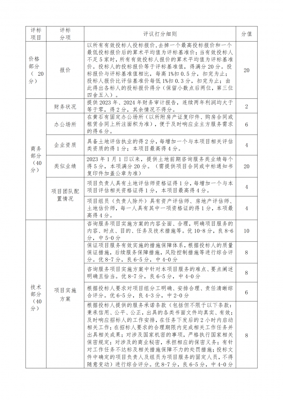 (五)服務(wù)內(nèi)容:對(duì)黃石市城發(fā)土地資產(chǎn)運(yùn)營(yíng)管理有限公司提供評(píng)估項(xiàng)目審核、項(xiàng)目可行性分析咨詢、資產(chǎn)價(jià)值測(cè)算、收儲(chǔ)地塊資產(chǎn)平衡方案、增資擴(kuò)容咨詢、相關(guān)業(yè)務(wù)培訓(xùn)等服務(wù)。