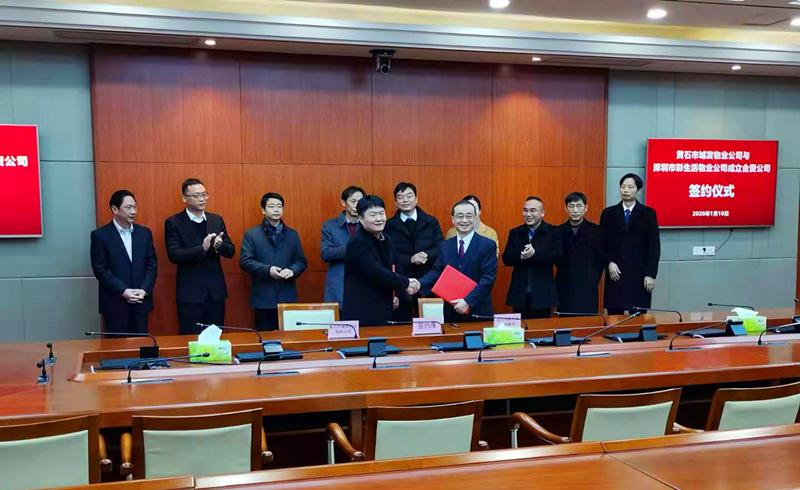 1月10日上午10:30,城發(fā)物業(yè)公司與全國排名前三的深圳市彩生活服務集團在城發(fā)集團舉行合資公司(黃石市城發(fā)彩生活物業(yè)服務有限公司)簽約儀式。
