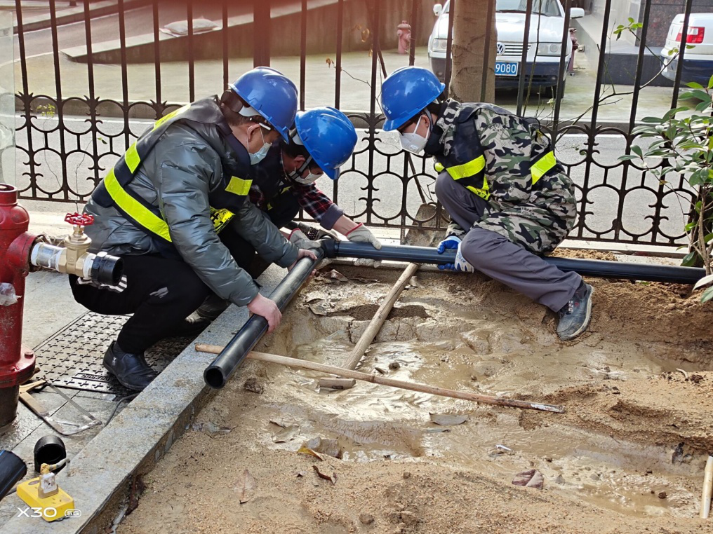 為保障黃石市新型冠狀病毒肺炎疫情防控指揮部將新建臨時食堂正常用水,2月3日,接到通知的當天市自來水有限公司迅速安排客服中心、設(shè)計公司以及建設(shè)工程公司相關(guān)負責人趕赴現(xiàn)場,特事特辦,三個部門現(xiàn)場進行勘測設(shè)計、制定方案并迅速組織材料施工,僅5小時便完成外部敷設(shè)供水管道96米、安裝閥門2臺,具備了通水條件。不忘初心,特殊時期依舊心系民生。2月1日,黃石公園一名用戶反映無水,公司立即安排經(jīng)營銷售公司與該物業(yè)公司聯(lián)系。經(jīng)了解,是該物業(yè)公司管理的一棟樓房高壓區(qū)無水。物業(yè)公司人員趕到現(xiàn)場查看后,分析可能是二次加壓泵壞了或管道破損漏水,希望得到專業(yè)的幫助。市自來水有限公司秉著盡快解決用戶用水問題的宗旨,安排管網(wǎng)維護公司檢測中心協(xié)助找到了漏水點并于當天下午及時恢復(fù)了供水。