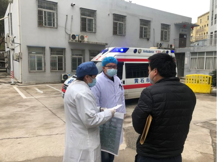 二醫(yī)院楠竹林社區(qū)康養(yǎng)中心詹文芳轉(zhuǎn)移疑似病患,正在進(jìn)行交接。